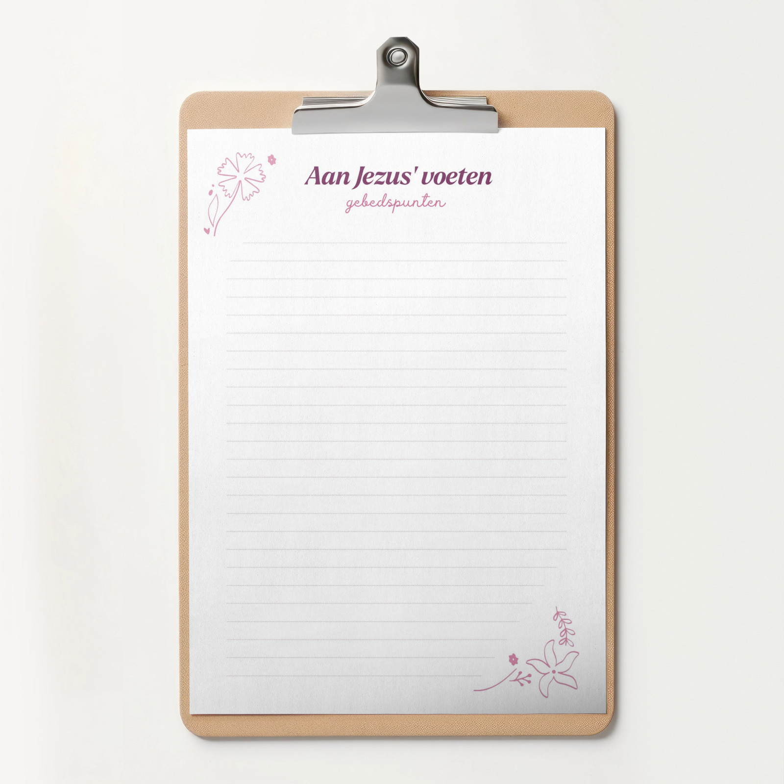 Klembord met 5 gebedskaarten op A5-formaat.